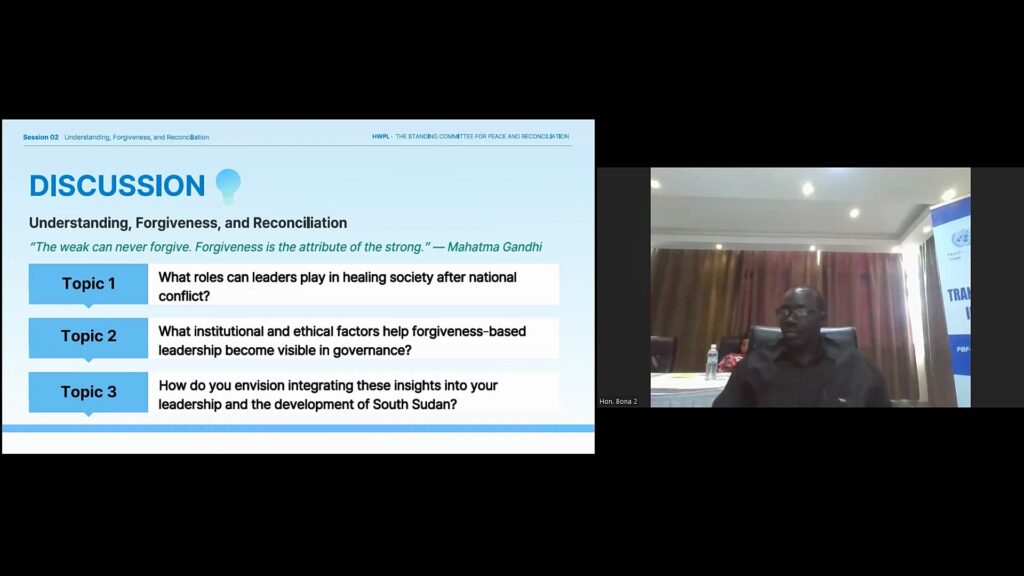Hon. Bona Deng Lawrence, Chairperson of the TNLA Standing Committee on Peace and Reconciliation, shared his profound reflections on the session: