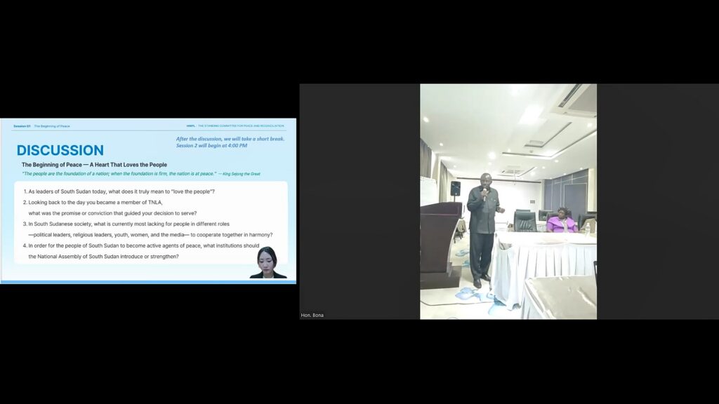 This session marked the launch of a four-part series titled « People-Centered Peace Leadership Education« . The program is being conducted with the participation of the Standing Committee on Peace and Reconciliation of the TNLA and will continue with additional sessions focused on peace leadership, social integration, and the nation-building process in South Sudan.