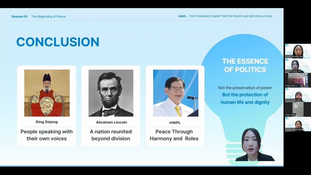 During the lecture and the 100-minute in-depth discussion, HWPL served as a facilitator, supporting participants in articulating their own « philosophy of peace. » Based on the values presented by HWPL, the MPs engaged in a profound debate over the specific virtues and action plans required of leaders to protect their citizens and unify the country.