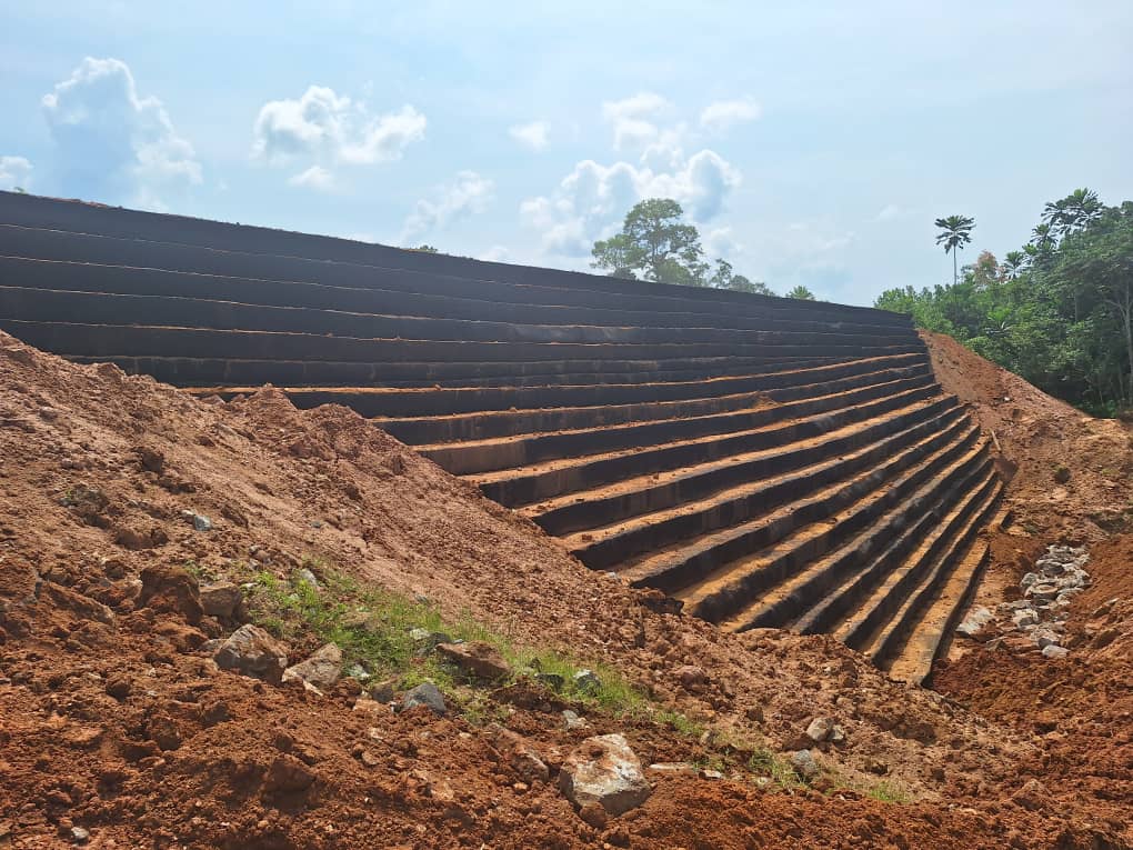 L’effondrement partiel de la route Bonepoupa-Yabassi enregistrée en août 2024, au point kilométrique 2+375 fait aujourd’hui l’objet de curiosité et même de tourisme pour les usagers qui empruntent cette route pour se rendre à Yabassi et ou Bonepoupa. La reconstruction du remblai a été faite à travers le déploiement d’une technique innovante le géogrille système de remblai renforcé fortract nature. De l’explication donnée par le Chef de la mission de contrôle Michel Ntchatcho,