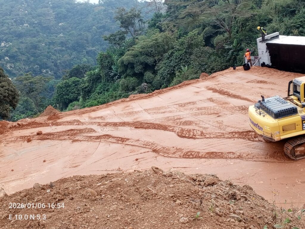 Dans le prolongement des actions menées en fin d’année 2025, l’entreprise CFHEC poursuit la construction des dalots et des voies de drainage, tout en renforçant sa logistique. Entre le samedi 3 et le lundi 5 janvier 2026, les équipes ont assuré le transport de la latérite et sa mise en dépôt provisoire, en vue des prochaines phases de remblai. Les travaux de ferraillage, de coffrage et de coulage des joints du dalot se sont également poursuivis de manière régulière. Les parois extérieures du dalot ont également fait l’objet d’un badigeonnage au bitume, à l’effet de renforcer la protection de la structure contre l’humidité et les infiltrations.