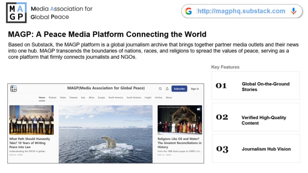 The workshop also introduced the Media and Global Peace Platform (MAGP), a Substack-based global network connecting journalists and NGOs across borders. The platform is expected to support the global expansion of peace journalism.