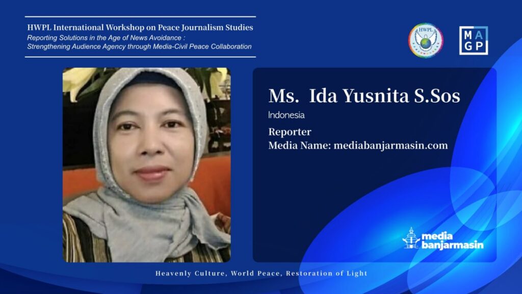 Another presentation was delivered by Ms. Ida Yusnita, a journalist from mediabanjarmasin.com, Indonesia, under the theme “Peace: A Human Right That We Must Protect Together.” She defined peace not merely as the absence of war, but as a condition grounded in security, equality, and justice, requiring collective responsibility.