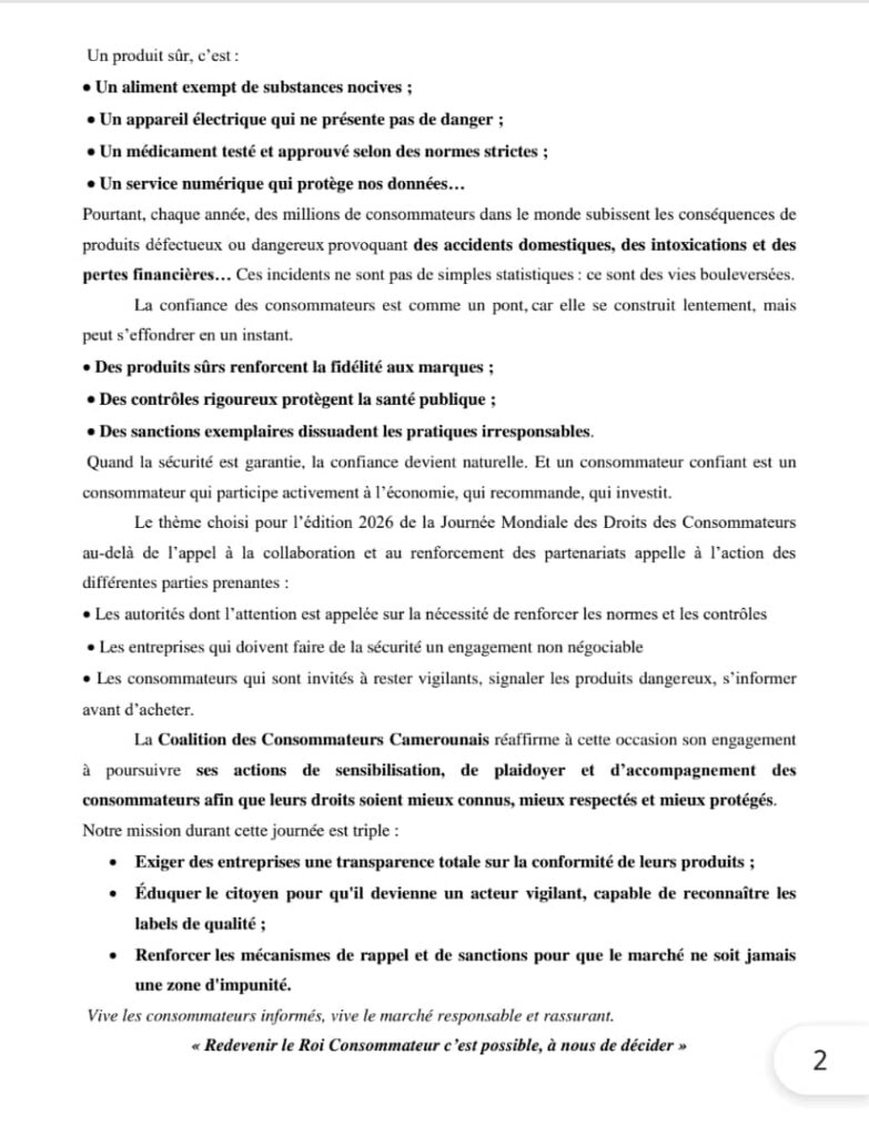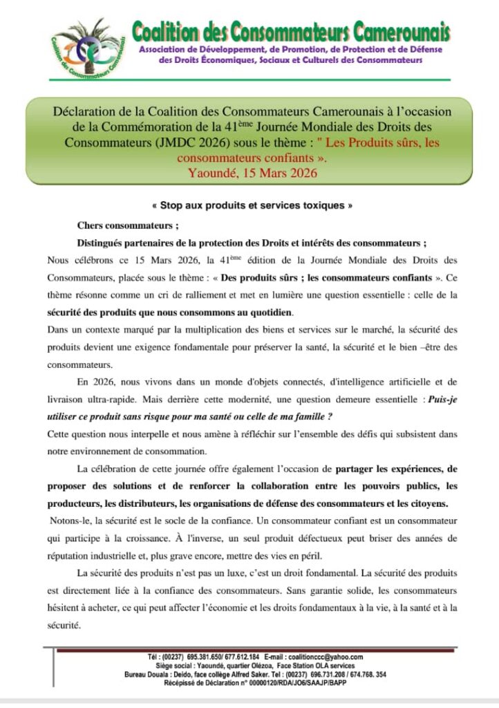 A travers ce message, la coalition réaffirme son engagement à promouvoir une consommation responsable et une meilleure protection des intérêts des citoyens.