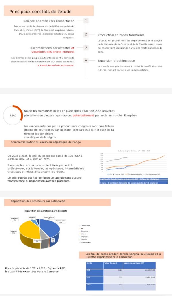 A travers cet appel, la société civile congolaise entend contribuer à la construction d’une filière cacao plus transparente, durable et respectueuse des forêts en Afrique centrale. La coopération avec les organisations camerounaises apparaît comme un levier essentiel pour lutter efficacement contre la destruction et le commerce illicite.